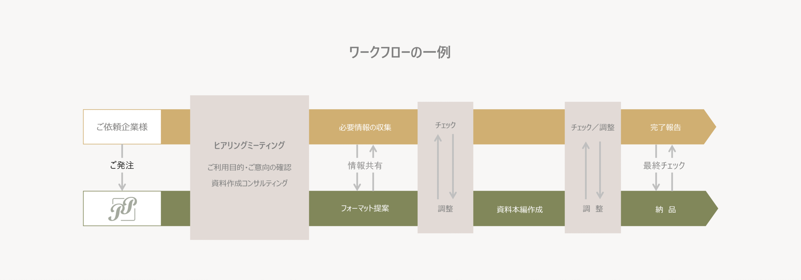 充分なヒアリングを行った上で、資料作成の目的・期待効果を加味して柔軟に対応いたします。
